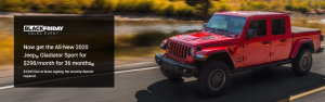 $3,995 total due at lease signing. No security deposit required. Tax, title and license extra. Lease example for 2020 GLADIATOR SPORT 4X4