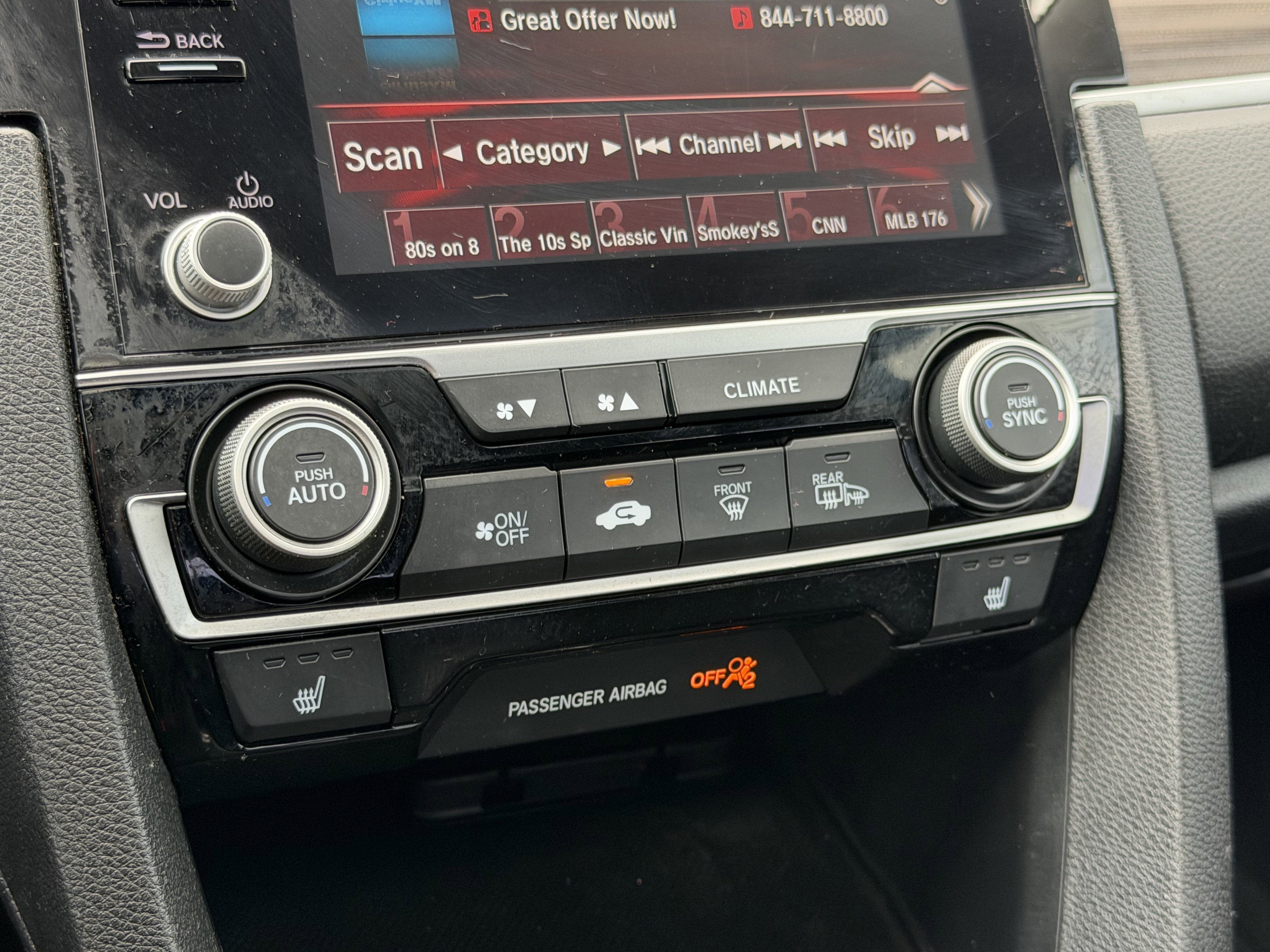 - Radio: 180-Watt AM/FM/HD/SiriusXM Audio System -inc: 8 speakers, 7-inch display w/high-resolution electrostatic touch-screen, knob and hard keys for primary controls, customizable feature settings, Bluetooth® HandsFreeLink, Bluetooth® streaming audio, radio data system (RDS), speed-sensitive volume compensation (SVC), 1.5-amp USB smartphone/audio interface in front console, 1.0-amp USB audio interface port in center console, HondaLink, Apple CarPlay integration, Android Auto integration, SMS text message function, fin-type roof-mounted antenna and illuminated steering wheel-mounted controls
