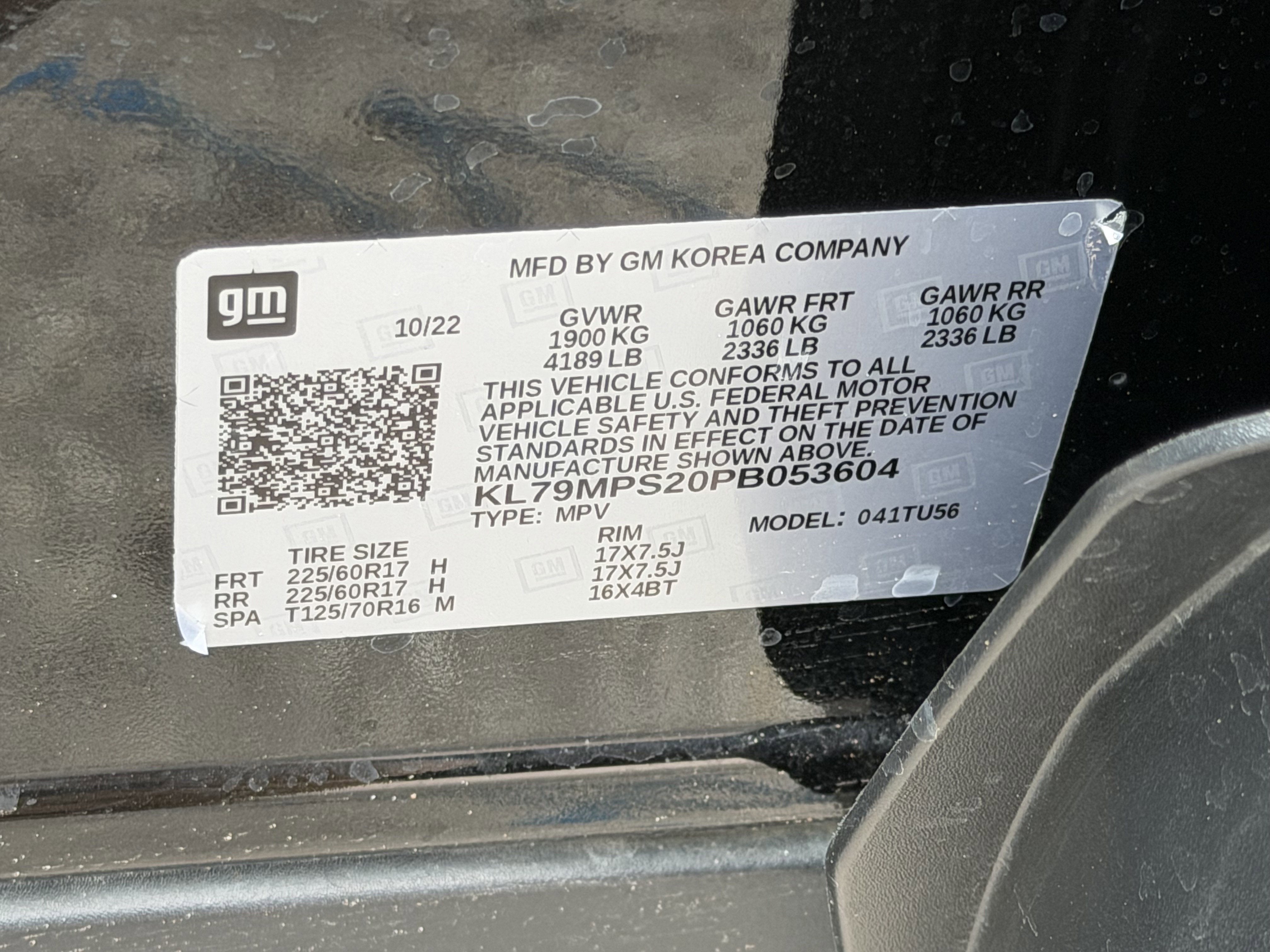 - Tires, 225/60R17 all-season, blackwall