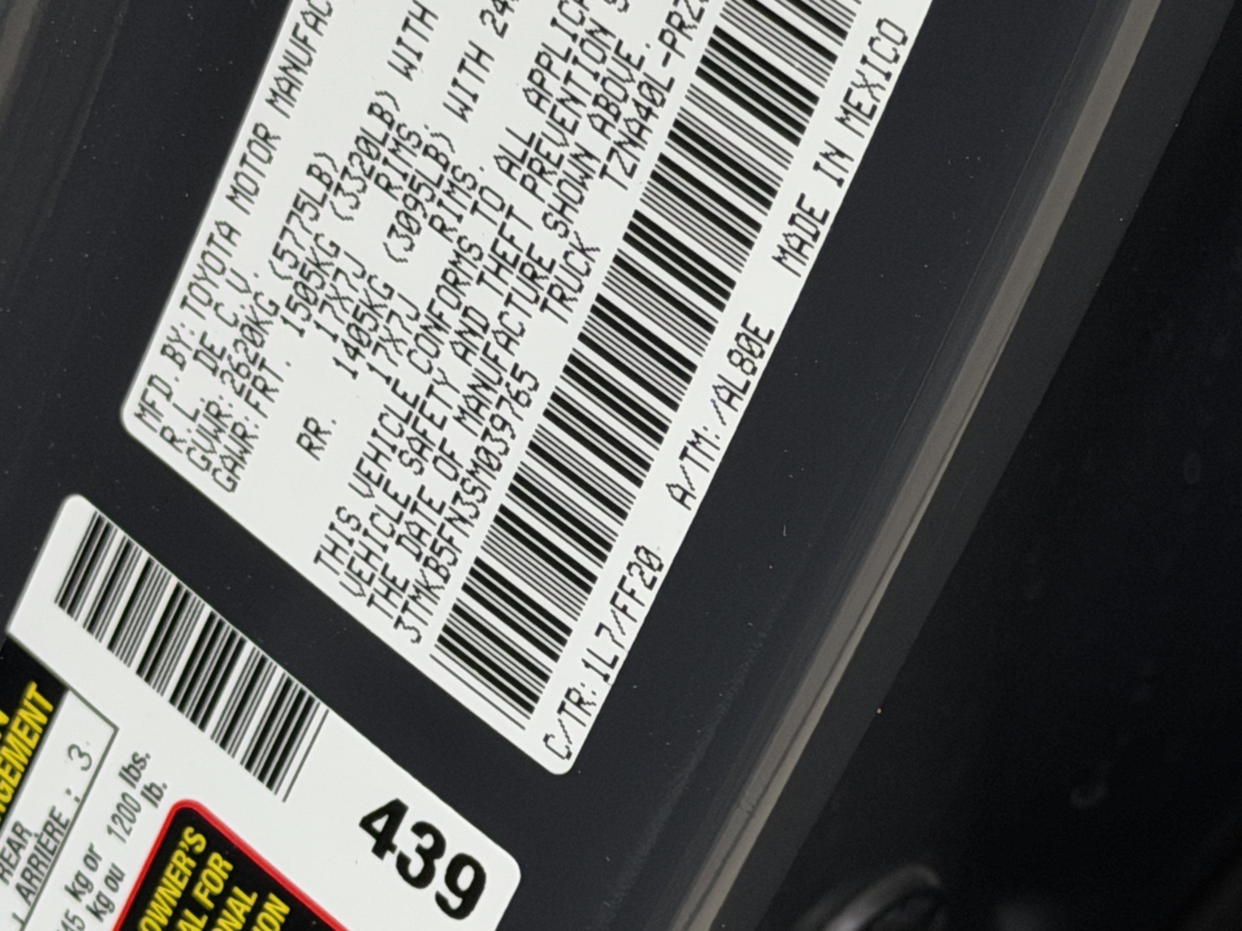 - Vehicle Name: Toyota Tacoma 2WD